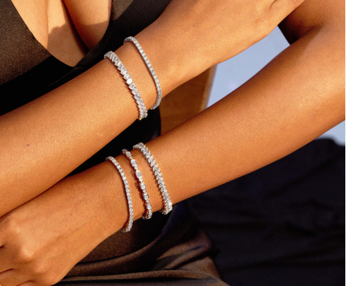 Tennis Bracelet: a delicate, flexible, versatile band with a line (or multiple lines) of diamonds or gemstones, known for its elegance and timeless beauty.