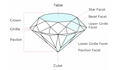 Bezel, Star, and Upper-Girdle Facets: These facets close to the table play an important role in directing light into the diamond and enhancing its brilliance.